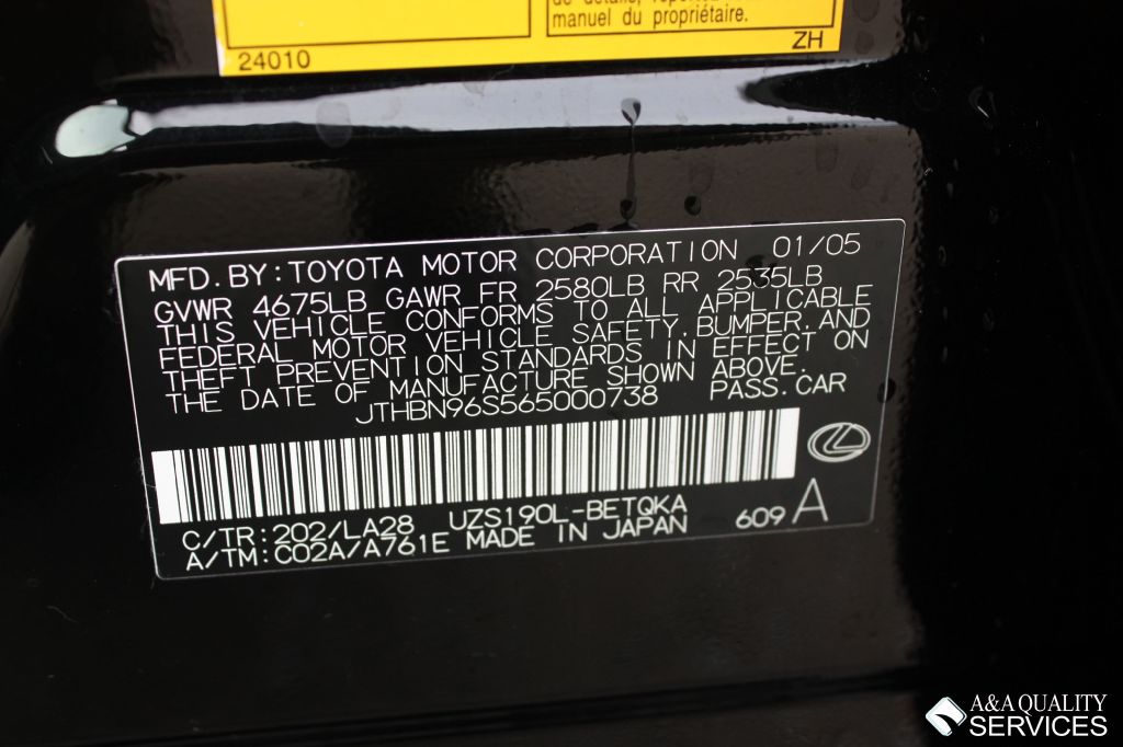 | Transmission: | Automatic | Engine: | 8 Cylinder 4.3 Liter | VIN: | JTHBN96S565000738 |