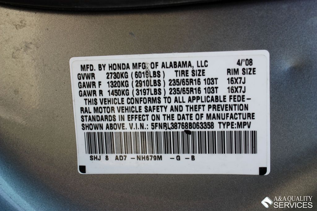 | Year: | 2008 | Make: | Honda | Model: | Odyssey EX-L |