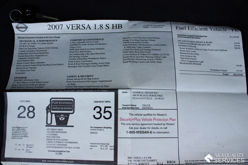 | Year: | 2007 | Make: | Nissan | Model: | Versa Hatchback S |