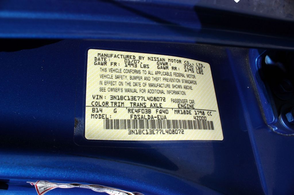 | Transmission: | Automatic | Engine: | 4 Cylinder 1.8L | VIN: | 3N1BC13E77L408072 |